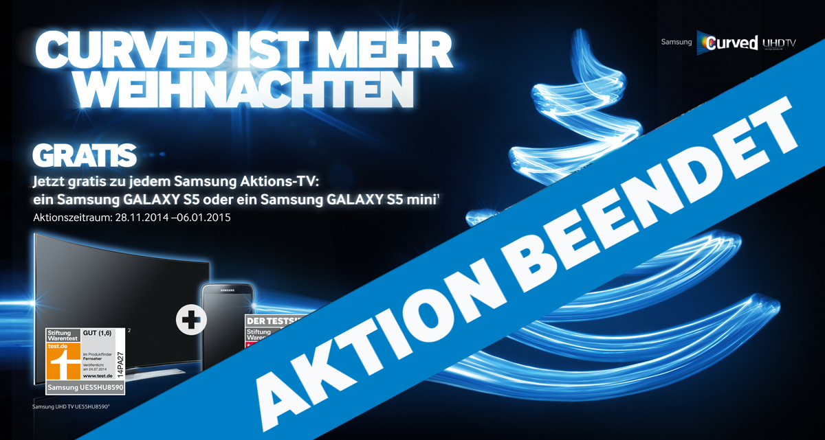 H8090, der Flat UHD TV-Serie HU7590 oder der Flat Full HD TV-Serie H7090 bei teilnehmenden Händlern in Deutschland zwischen dem 28.11.2014 und dem 06.01.2015. Die Zugabe (GALAXY S5 bzw. GALAXY S5 mini) ist abhängig von der Bildschirm-